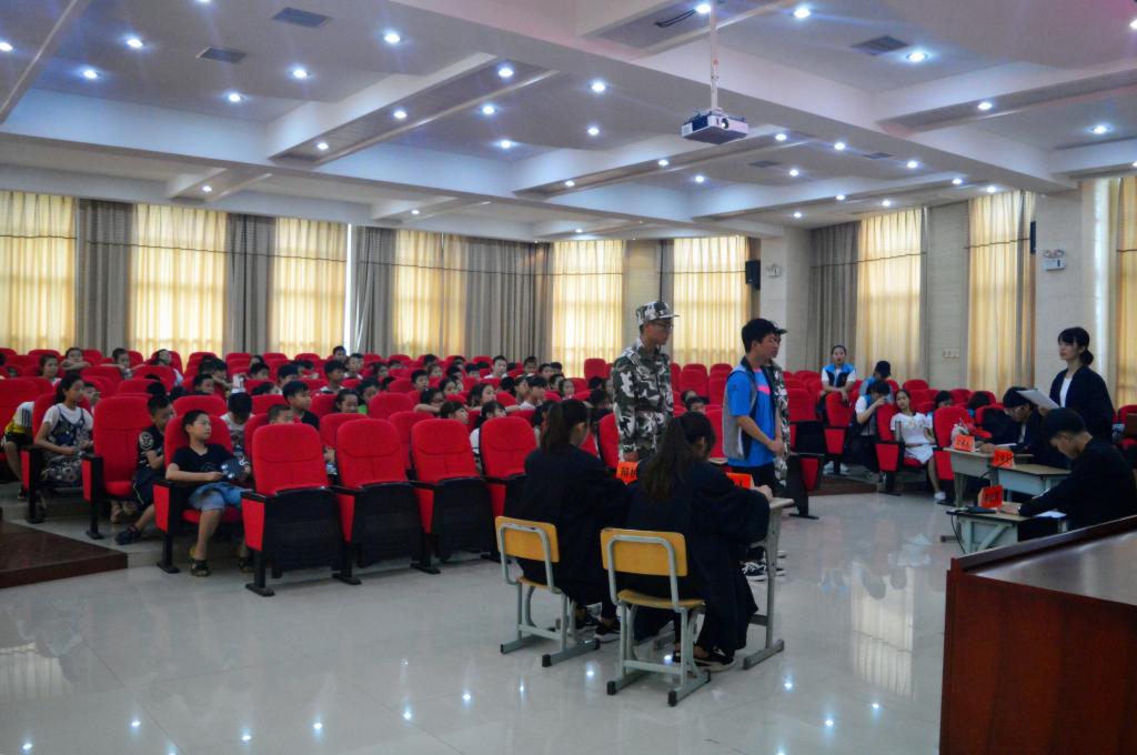 上午10点,“未成年人犯罪模拟法庭”在杨庙小学的报告厅展开。学生们利用专业所学,通过模拟未成年人持刀抢劫案的具体审判过程,向小朋友们展现、强调了法律的严肃性和遵守法律的必要性。在活动过程中,志愿者们还设计了现场提问、角色体验等互动环节,让小朋友们在切实的体验中对犯罪、法律有了更加深刻的理解和认识,也使他们遵法守法的意识得到了强化。