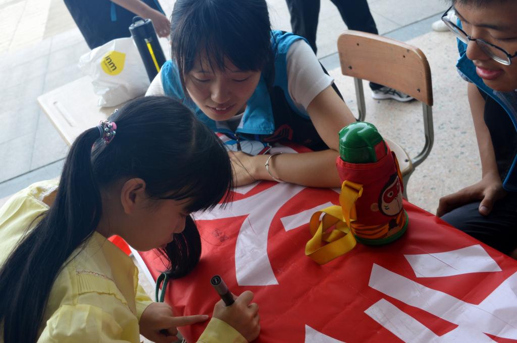 中午,志愿者们在杨庙小学展开“剿灭劣V类水,青春护航天凝”的横幅,鼓励小学生们写下自己的签名和想说的话,倡议同学们一起加入到保护家乡环境的队伍中来,让家乡的水更清、天更蓝;志愿者们还向同学们宣传普及了相关的环保知识,并鼓励小学朋友学习环保知识,提升环保意识。