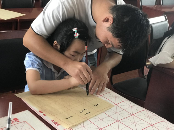 上午8时,在墨香飘逸的教室中,志愿者们开展了讲授毛笔书法的课堂,手把手地教小朋友书写中国汉字,向同学们展示汉字中的基本笔画——横与竖的写法以及“中”字的笔顺。横撇竖捺,简单的笔法、深厚的文化底蕴,向同学们呈现出的是中国汉字的迷人灵魂和魅力。与此同时,在志愿者们细心的指导下,同学们以认真严谨的态度,以稚嫩青涩的笔法,写下一个个充满古典韵味的汉字,让中华文化、汉韵墨香,一代代中华文化精神、经典永传承。