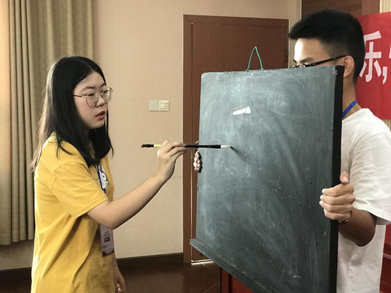 中文系的志愿者们给大家开设了软笔书法课堂与汉服课堂,向同学们普及了中国传统文化知识。这是志愿者与嘉善天凝镇团委共同对接承办的活动,共分为“知书”、“知礼”两个环节。过程中,还设置了汉字游戏,孩子们进入了“找错字”的游戏环节。