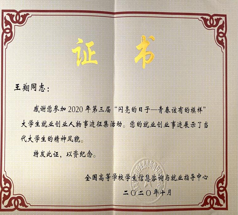 近日,在全国第三届“闪亮的日子——青春该有的模样”大学生就业创业人物事迹征集活动中,老虎机 2015届法学专业的本科毕业生王翔同志成功入选全国征兵入伍人物事迹名单,这也是老虎机今年唯一入选的人物事迹名单。