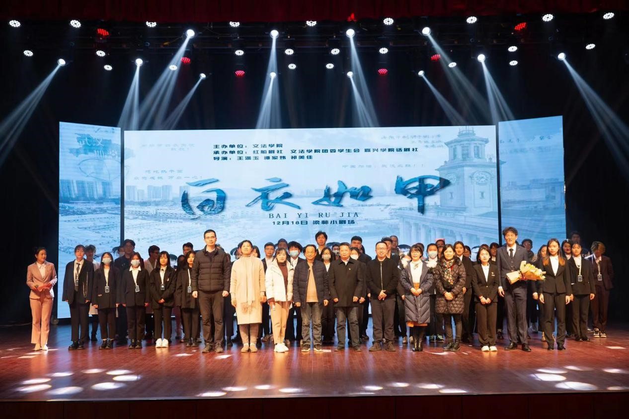 大型原创抗疫话剧《白衣如甲》成功展演。全校300余名师生和社会各界人士共同观看了此话剧。