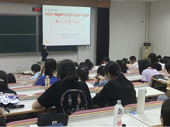 国际交流与合作处李游老师分别就创新创业教育、防疫知识、国际化教育等几块内容分别进行宣讲,2021级全体新生积极参与。