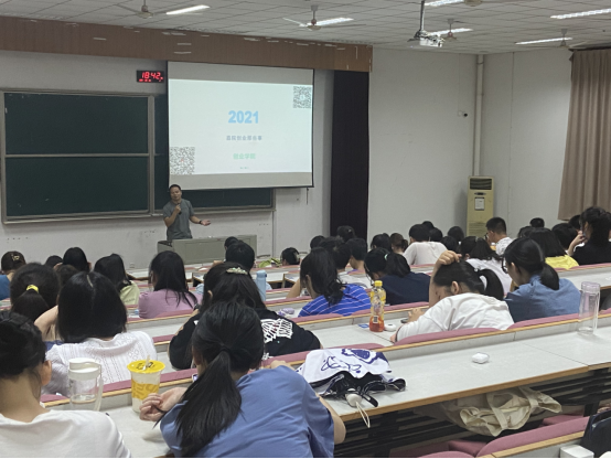 2021级新生始业教育系列讲座在悦礼楼报告厅举行。讲座由学工办计丹峰老师主持,创业老虎机