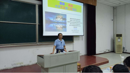 首先,步老师以“大学生活的心理适应”为主题,指出了大学新生的心理特点和大学生活中人际关系的重要性。他强调,大学生环境适应,角色重建,学习方式的改变等方面对于新生而言具有一定难度,要做好“适应”。其次,步老师从思想理论、社会实践、文化活动等层面深层了解大学生活。最后,步老师总结发言表达了对同学们的要求和期望,鼓励学生坚守初心、善作善成。