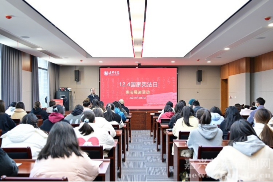 师生积极组织开展“宪法宣传周”系列活动,开展宪法晨读、法律援助、模拟法庭等系列活动。