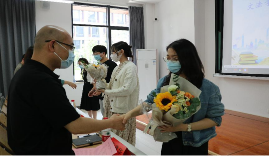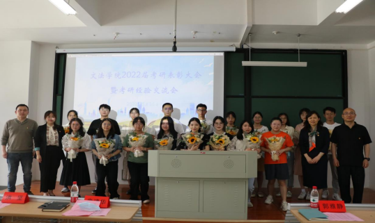 2022届毕业生考研的基本情况做了总结。各位出席会议的老师向考取研究生的同学赠与鲜花,并进行了合影留念。