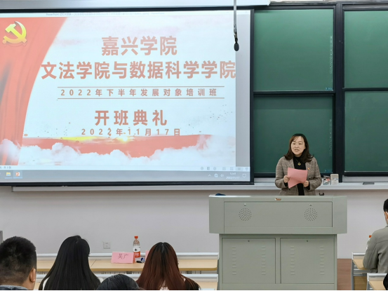 典礼上,吴广老师为同学们介绍本次发展对象培训班学员及课程设置情况,对培训班课程安排、纪律问题等事宜做简单讲解。法学202班的丁圣杰同学作为代表向党组织表态:希望利用这次机会,全面深入地理解党的性质,领会党的纲领,学习党的纪律以及端正入党动机,思想上准备更充分,行动中定位更准确,前进时方向更清晰,争取早日加入党组织。