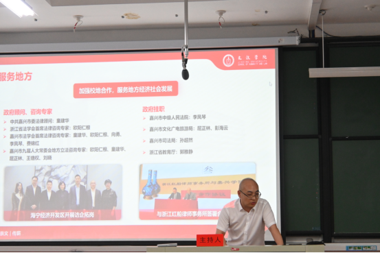 党委书记洪坚、副院长童建华(主持工作)、副院长屈正林、法学系负责人唐永梅、中文系负责人郭雅静以及新生班班主任、辅导员、新生家长参加此次新生家长会。会议由洪坚主持。
