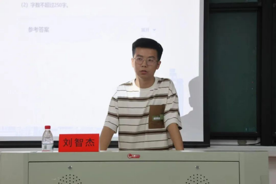 在问答环节中,学生们积极提问,向校友们寻求更多实用的建议。其中一个学生询问了关于申论写作的问题,刘智杰学长耐心解答,并分享了一些建议和范例。