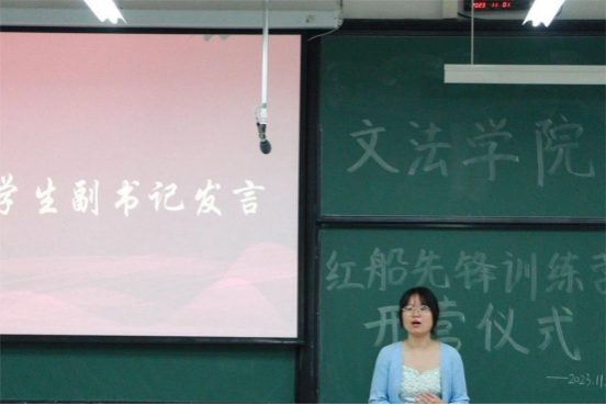 开营仪式开始,主持人金智悦向大家介绍了本次红船先锋训练营及培训计划。红船先锋训练营的培训计划主要由岗位技能、思想素质、志愿服务、学风建设等理论培训课程和追寻红船精神主题的实践课程构成。本次培训计划为期40天,涵盖了领导力、团队协作、团队建设等多个方面,让同学们在轻松愉快的氛围中学习和成长。