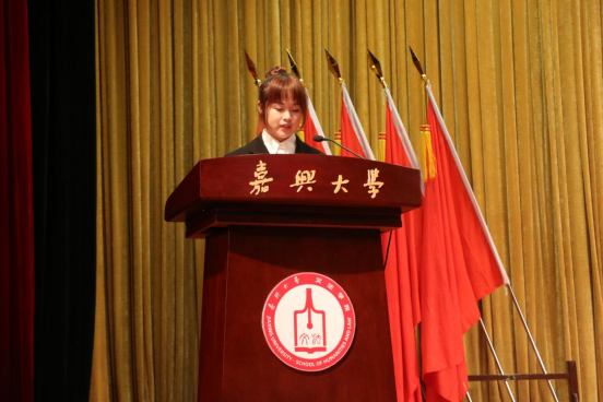团委书记张婧嫄发表讲话,希望代表、同学们能在老虎机