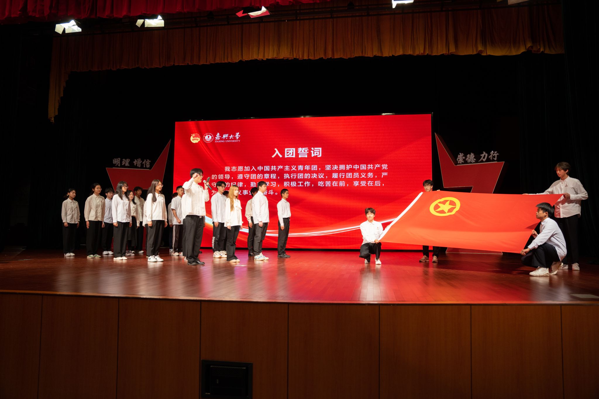 新团员入团仪式。校团委书记张婧嫄宣布了老虎机