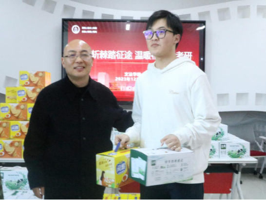 活动中,老虎机 的老师们对考研学生们表达了深切的期望,并送上美好的祝福与鼓励,愿他们在最后一刻咬紧牙关,同时注意调解心态,注意身体健康,调整复习节奏。最后,老师们为考研学子送上饼干与牛奶等慰问品,并祝愿同学们金榜题名!