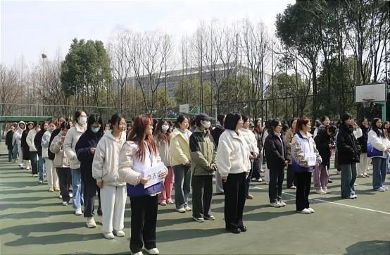 演练前,保卫处丁伟老师向同学们讲述演习要点、阐明演习步骤、严申演习纪律,并示范了灭火器的正确使用方法。同学们在老师的带领下保持整齐有序的队列,在演习始发处等待指令。演练中,警报响起,楼内浓烟弥漫,同学们用湿毛巾捂住口鼻,弯腰低身前进,按照预定的疏散路线迅速、有序地撤离到安全地带。过程中,同学们始终保持冷静严谨的态度,圆满完成了此次消防疏散演练。志愿者严守岗位,在消防演练进行做好秩序引导,消防演练得以顺利落幕。