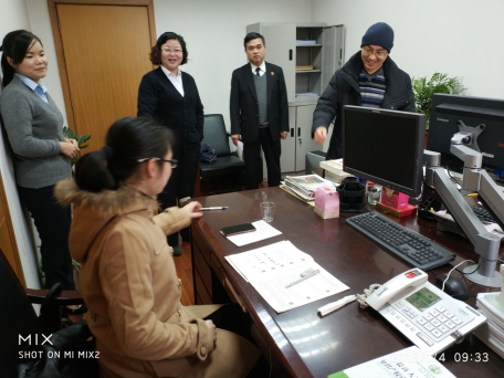 正在进行专业实习的部分法学学生。法学系副主任唐永梅参加了此次走访。