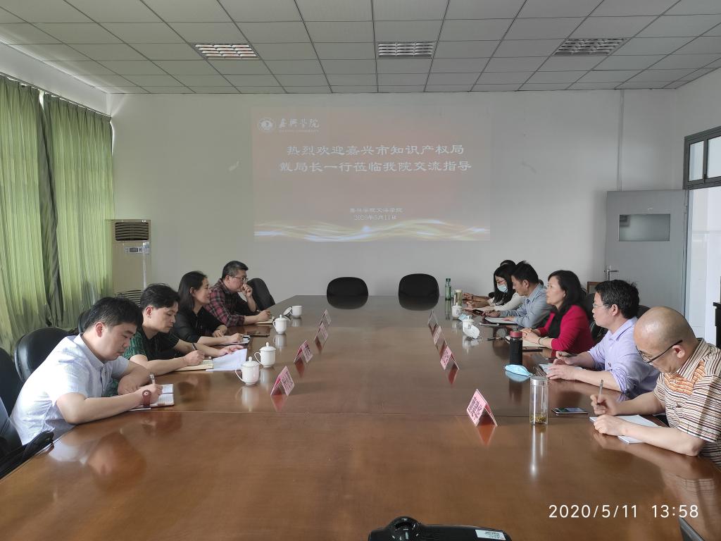 知识产权人才培养所作的努力表示肯定,希望双方之间在知识产权专业校外实践基地、知识产权保护中心校地共建等方加强交流合作,共同努力把嘉兴建设成为知识产权高地。