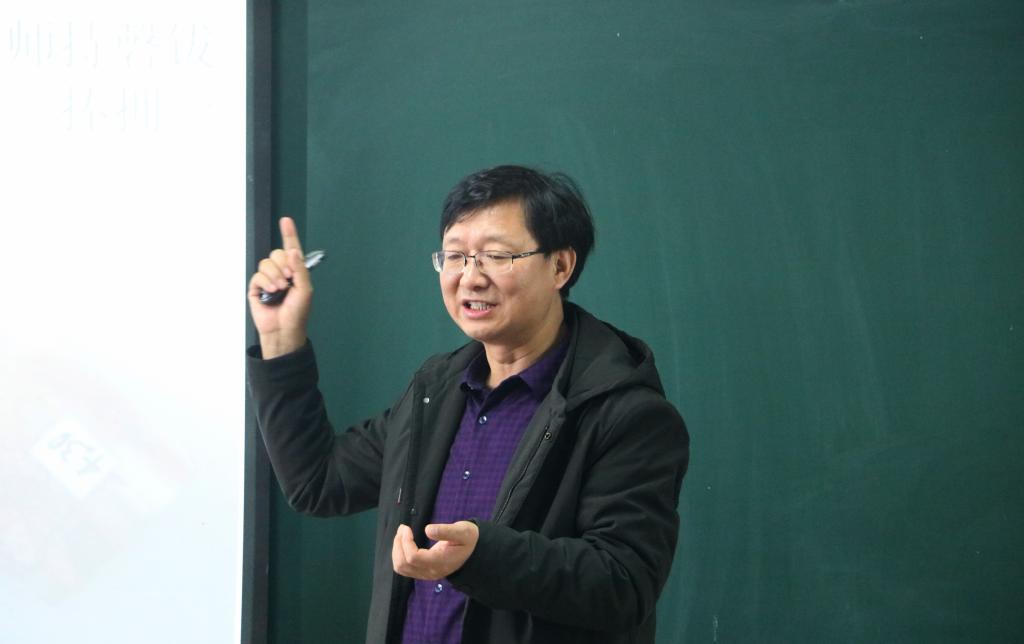 在一号楼405教室作关于“皇宫中的宗教表演:唐代诞节三教论衡与戏剧”的主题讲座,中文系部分老师和学生到场聆听。