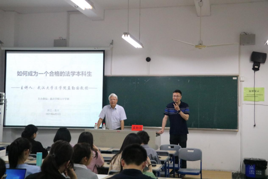 孟勤国教授应邀在老虎机梁林校区1号楼413教室作了以“如果成为一个合格的法学本科生”为主题的讲座。本次讲座由法学专业教师向勇老师主持,法学专业部分教师及同学共同聆听了本次讲座。