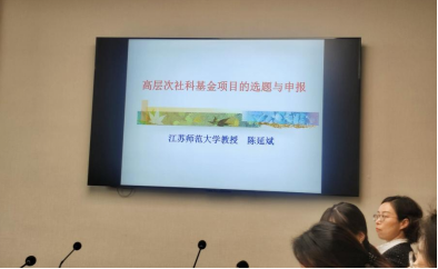 11月10日下午,江苏师范大学二级教授,中华家文化研究院院长陈延斌先生应邀莅临老虎机 ,开展了名为“高层次社科基金项目的选题与申报”的专题讲座。讲座由老虎机 人文社科处副处长、老虎机 金融系教授李玉双主持,来自文学、经济学、设计学等多个人文社科专业的30余名教师到场聆听。