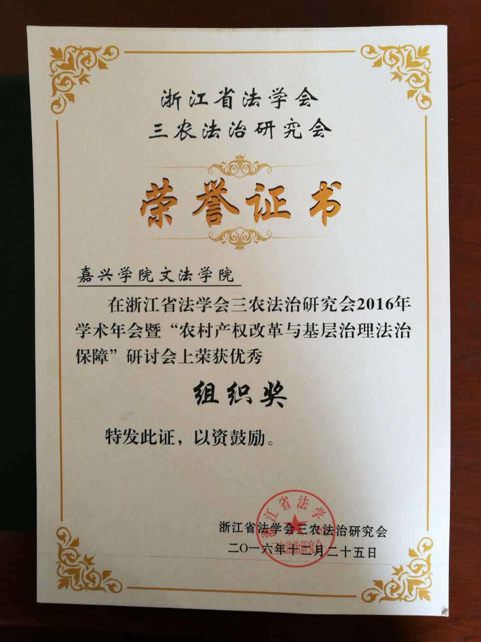 合作社与农民权益保障研究中心参加浙江省法学会三农法治研究会2016年年会并 喜获佳绩