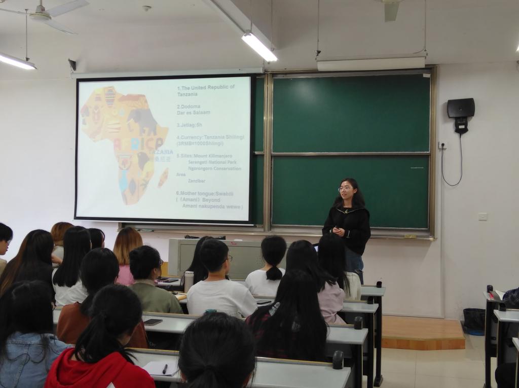 和汉语志愿者项目的基本情况,接着向同学们讲解了汉语志愿者项目申报条件、程序、录取培训及派出等各项事宜,并强调了诸多注意事项。归国志愿者胡馥筠、俞上分别结合自己在坦桑尼亚和喀麦隆做志愿者的亲身经历,图文并茂给大家展现了国家汉办汉语教师志愿者的真实生活、工作和工资待遇及志愿者的申请条件和要求,分享了作为志愿者的感想。最后针对大家的提问,老师们和两位归国志愿者一一作了耐心解答。