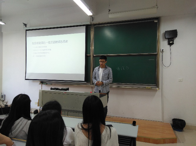 在梁林校区8号楼205室顺利举办汉语教师志愿者项目宣讲动员会。宣讲动员会由中文系屈正林老师主讲,回国志愿者胡馥筠、俞上应邀宣讲,中文系汉语国际教育专业学生以及来自商老虎机