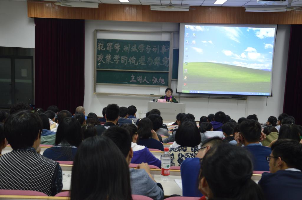 此次讲座主要围绕犯罪学、刑法学以及刑事政策学三者之间的关系展开。在谈及犯罪学与刑法学的关系中,张教授给学生们分析了引发犯罪的多重原因以及犯罪学与刑法学的主要区别与联系,最后还温馨的提示同学们在毕业论文选题中若有所涉及不要将二者混淆。在犯罪学与刑事政策学关系这一模块中,张教授让学生们对犯罪分子有了不同角度的认识:即犯罪人是众多社会矛盾的牺牲品,我们对犯罪分子惩罚打击的同时,更要注重拯救他们,从根源上减少杜绝犯罪需要制定良好有效的刑事政策。最好的刑事政策就是最好的社会政策。而通过刑法学与刑事政策的关系,学生们又明白了立法者的责任与刑事政策在维护公共秩序与保障公民自由之间的平衡。最后张教授又从整体角度对三者进行整合分析,让学生们深刻的认识到只有三者共同发展,才能实现最后的共赢。张教授还提醒学生们在以后的学习及人生道路上,更要学会并善于用全面的角度来分析问题,解决问题。整场讲座中,张教授娓娓道来,内容更是哲理深刻,讲座结束之后与在场的学生们积极交流,学生们沉浸在学术的氛围之中迟迟不愿离开。 这次讲座丰富了法学学生的专业知识,提高了学生的法律素养,同时也激发了他们的求知欲望。相信法学专业的莘莘学子一定会更加勇于探索,求知求真。