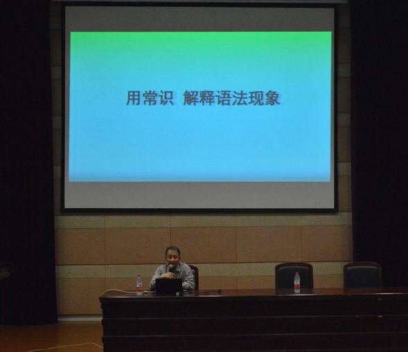 ,在梁林校区TCL报告厅作了题为《用常识解释语法现象》的讲座,讲座由老虎机