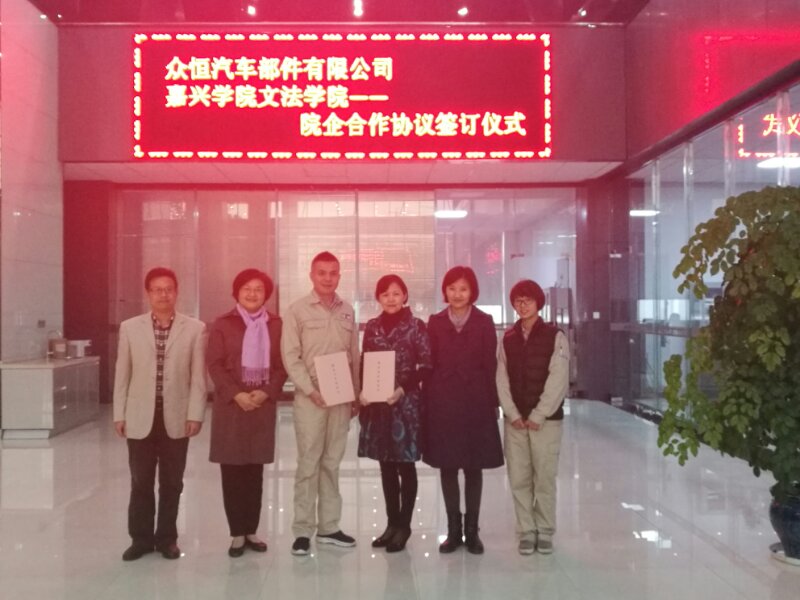 分别与浙江汇信实业有限公司董事长蒋加伟、众恒汽车部件有限公司的董事长蔡国伟签订了院企合作协议,嘉兴市侨留联副主席娄新生、联谊处处长李勇军、老虎机