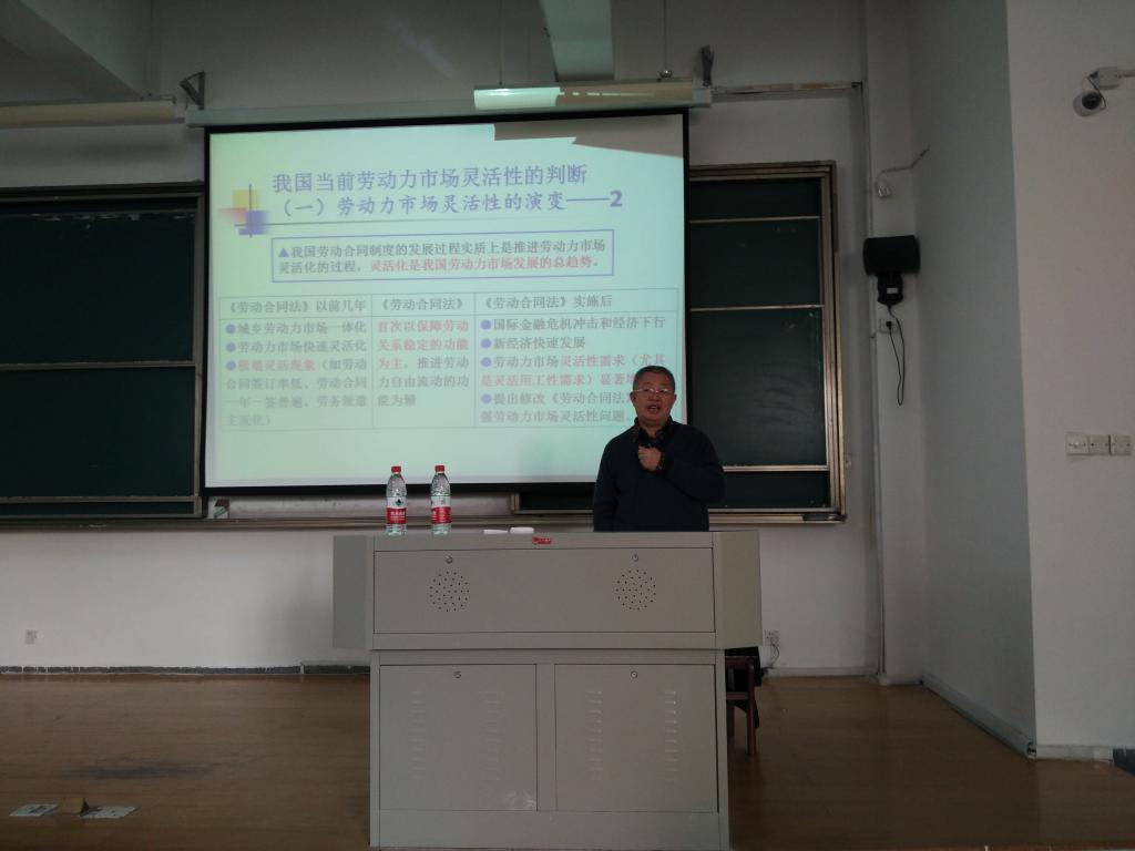 师生作了题为“增强劳动力市场灵活性的劳动法解读与应对”的学术报告。王教授的报告为三大部分内容,首先从历史演变、表现维度、法律相关点等方面谈了对劳动力市场灵活性的理解。其次,从国际比较、实证研究的角度分析了我国劳动力市场灵活性的国际评价表现和实践体现。最后,分析了劳动法增强劳动力市场灵活性的方向,指出取向的选择上应当精准和适当,不应“一边倒”、“一刀切”,要注意劳动法体系内外的分工,注意分类应对、分类调整。在交流环节中,老虎机