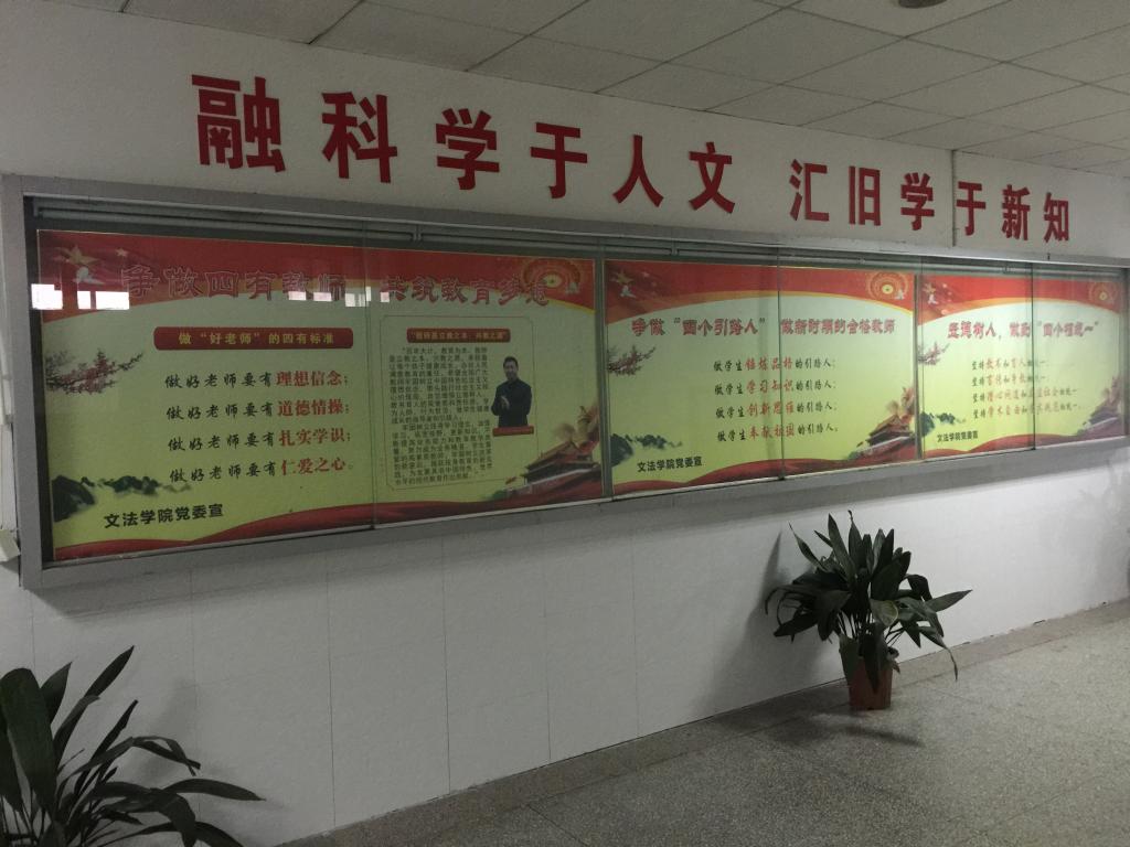 利用走廊文化建设,将新时期好教师“三个四”的标语做成展板在老虎机