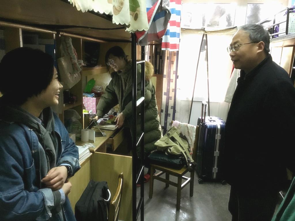 在走访过程中,吕书记了解了学生的返校情况情况,对学生住宿条件、学生寝室的卫生环境、潜在的安全隐患进行了查看。还亲切地询问了毕业生的考研、考公务员、找工作等情况。与同学亲切沟通,仔细聆听同学的心声,了解他们在生活上、学习上的困难,询问学生的家庭状况,同时也提醒同学在新学期,要及时调整状态,尽快转到学习模式,以积极向上的精神状态、饱满的热情投入到新学期的学习与生活。