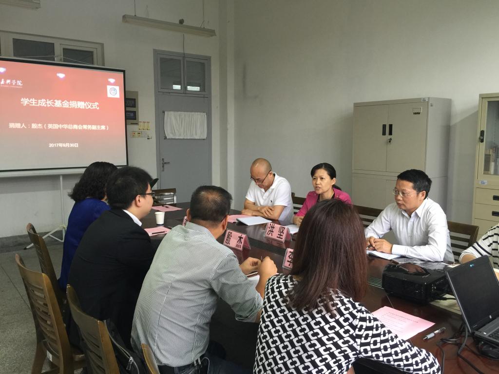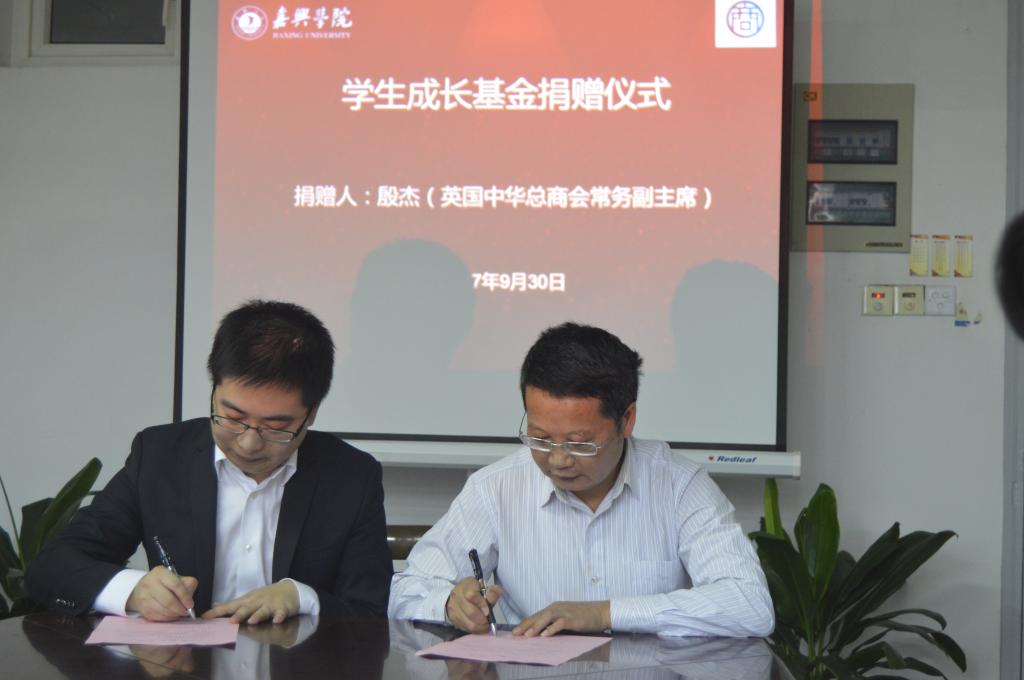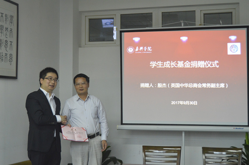 9月30日上午,殷杰先生爱心助学捐赠仪式在梁林校区1号楼446会议室举行。英国中华总商会常务副主席殷杰先生、嘉兴市侨联主席娄新生、嘉兴市侨联李勇军、老虎机