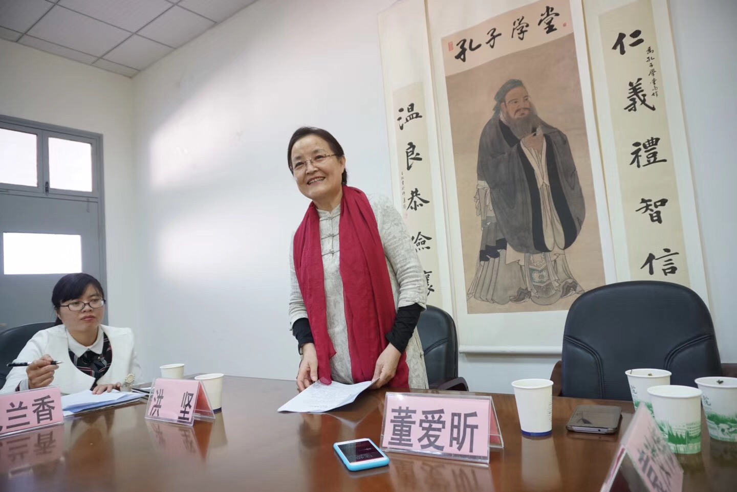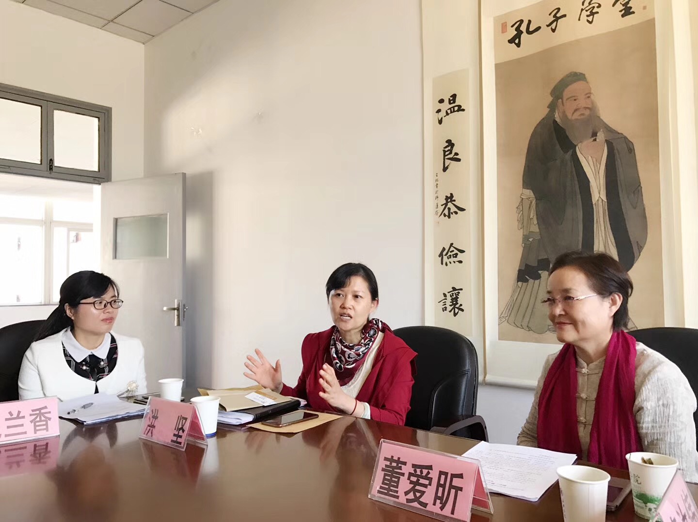 党委书记洪坚、山东商会代表袁汝伟、嘉兴市孔子学堂竹韦红、中文系副主任纪兰香以及老虎机