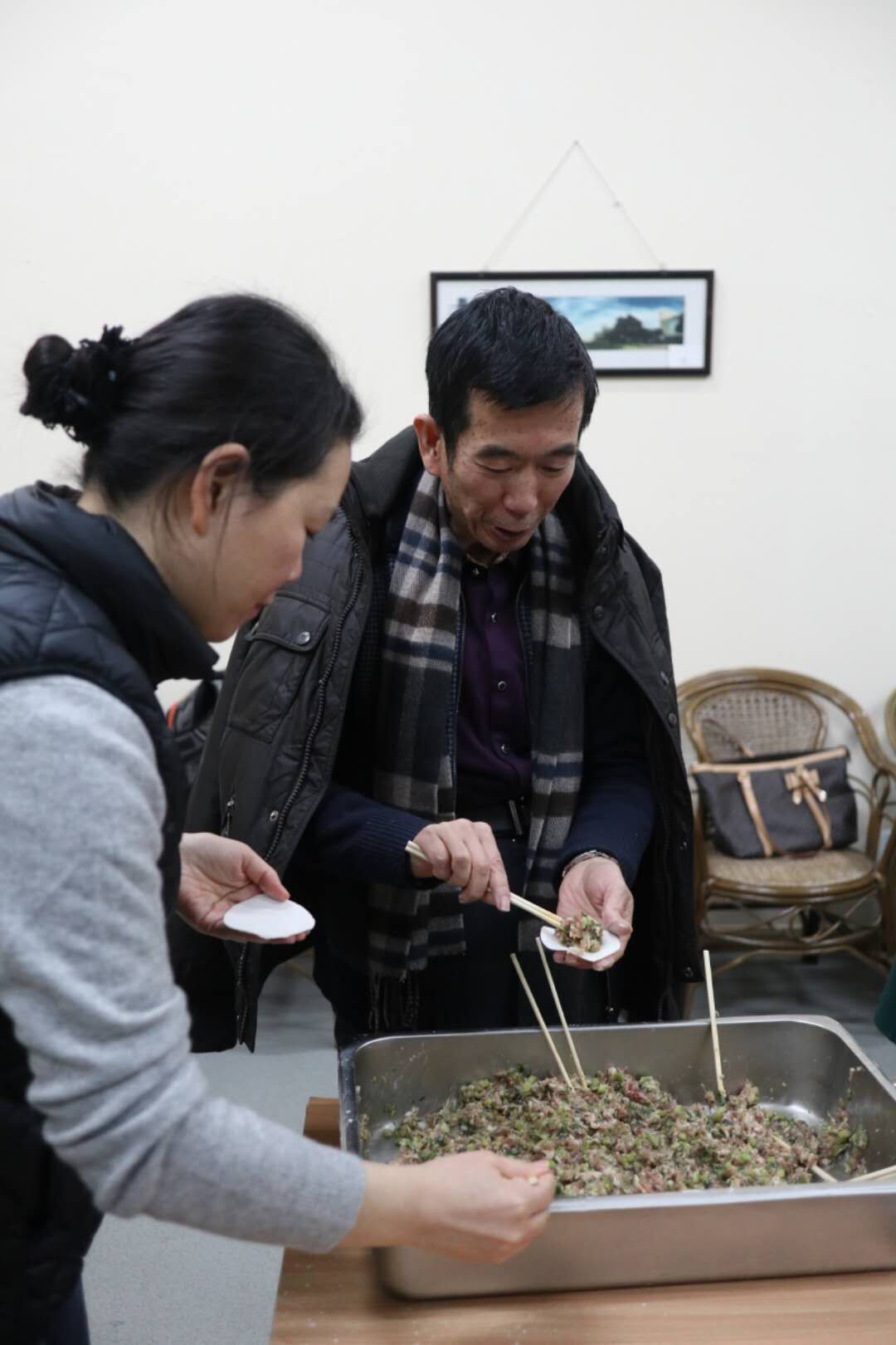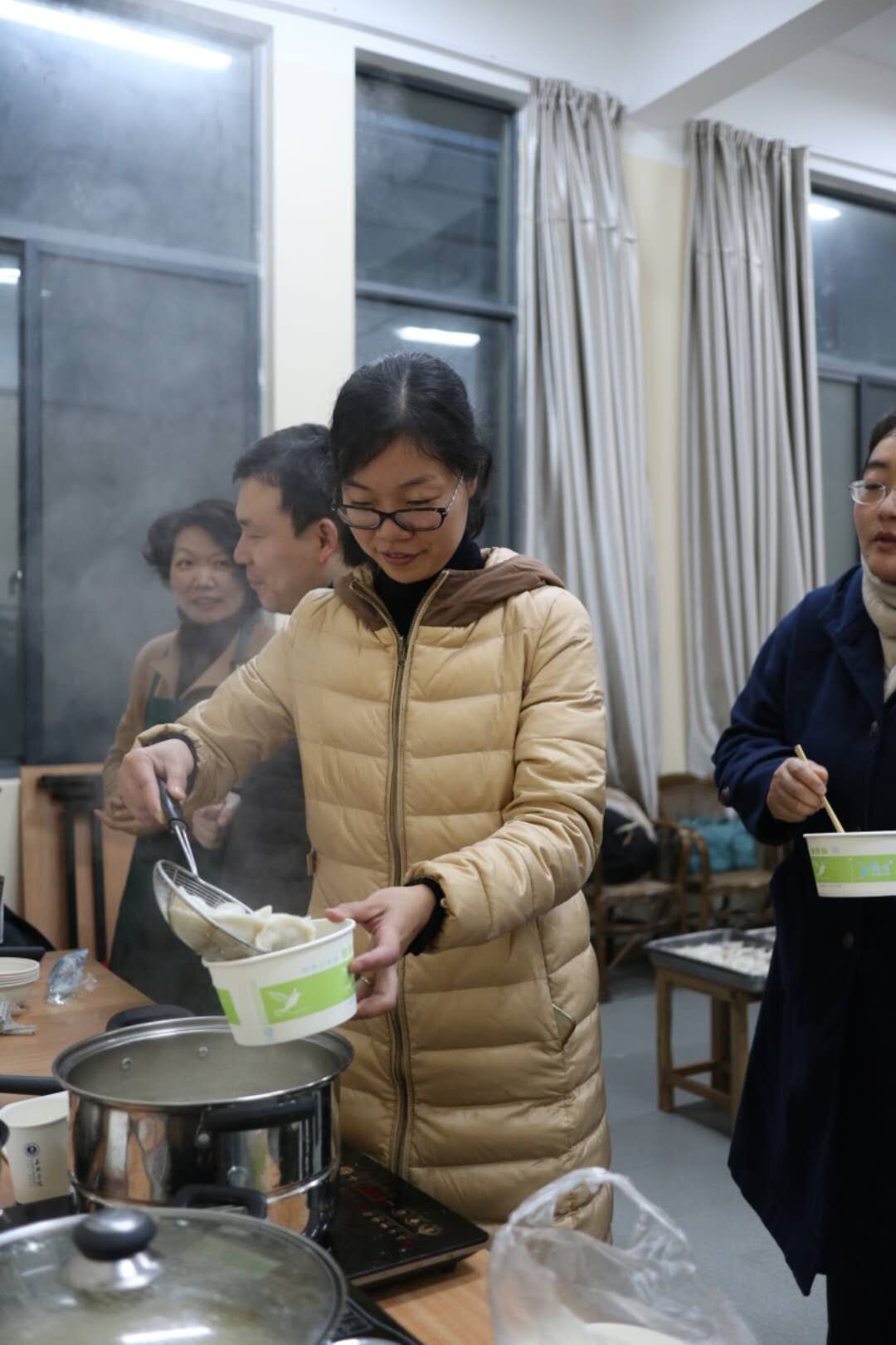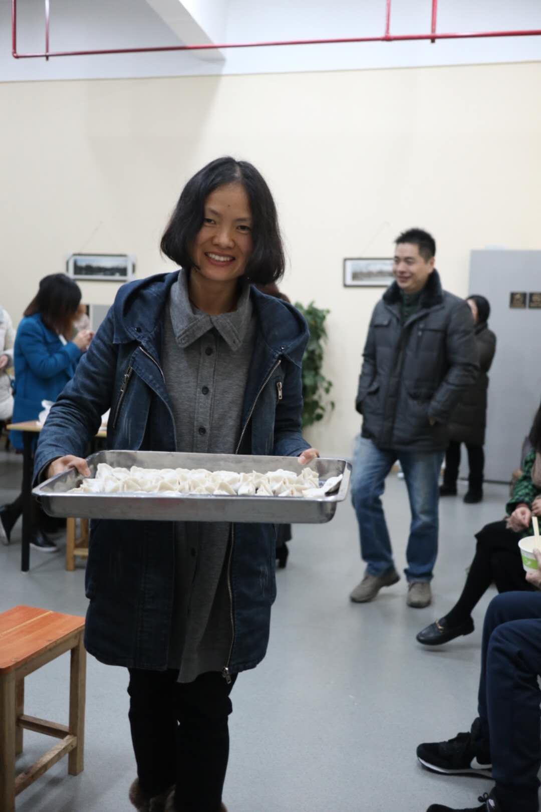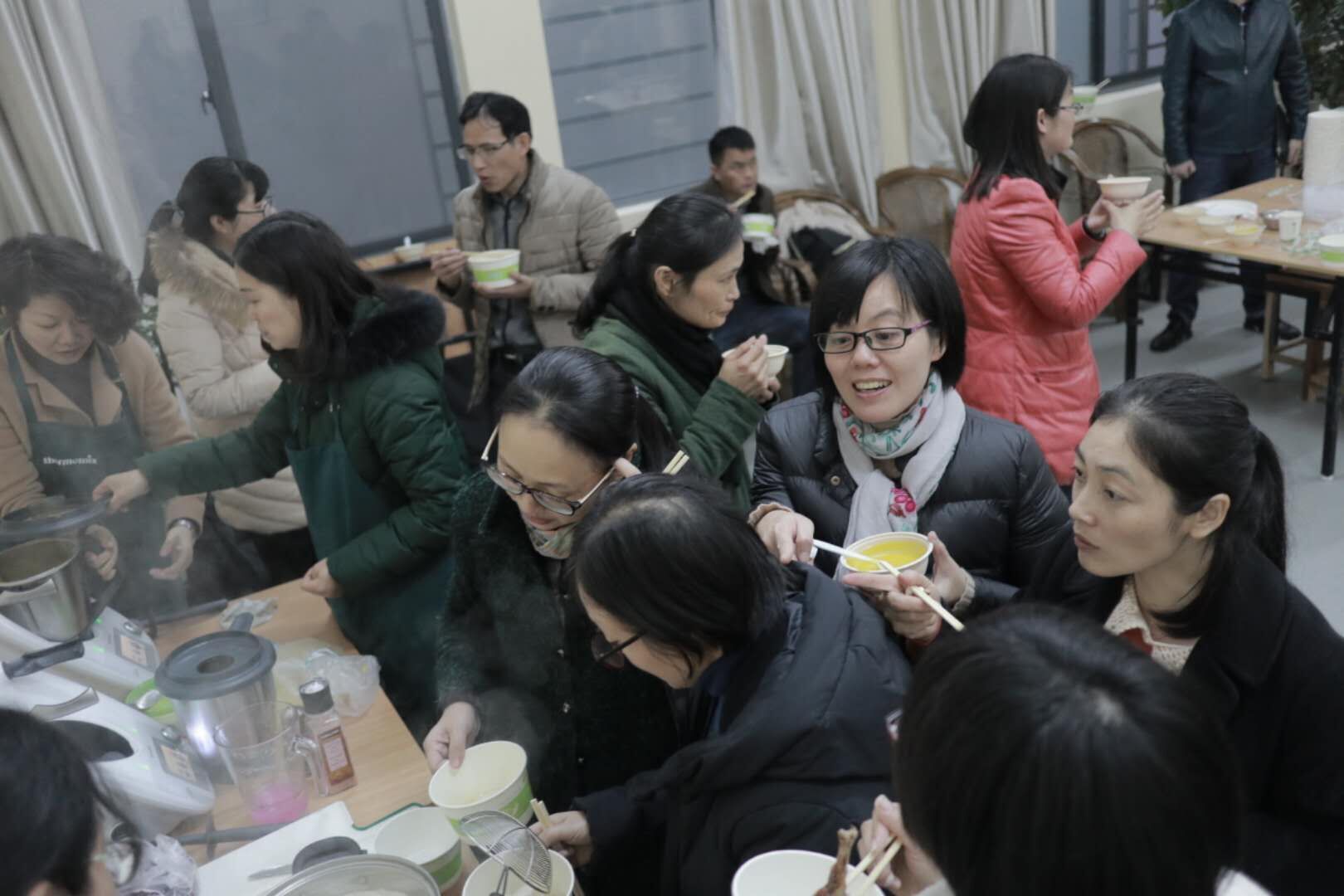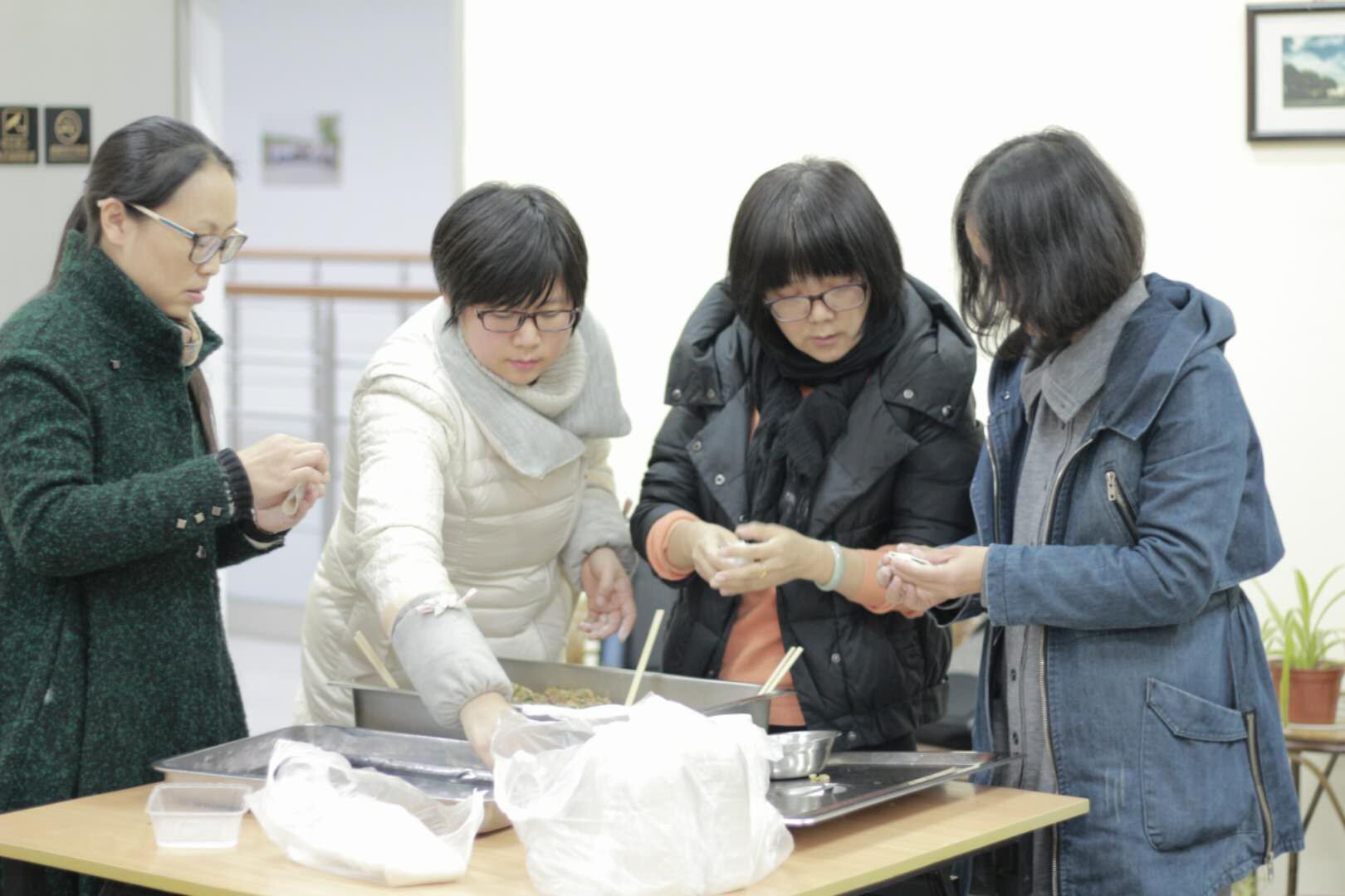 比赛结束,在校工会的活动室里,老师们各个心灵手巧,一起动手包起了饺子,大家还围绕学习、生活、工作等话题,不时开心交谈着,场面很是热闹。在大家的努力下,一碗碗热气腾腾的饺子在大家的期待中鲜鲜出炉,吃着自己包的香喷喷的饺子,大家心里美滋滋的。