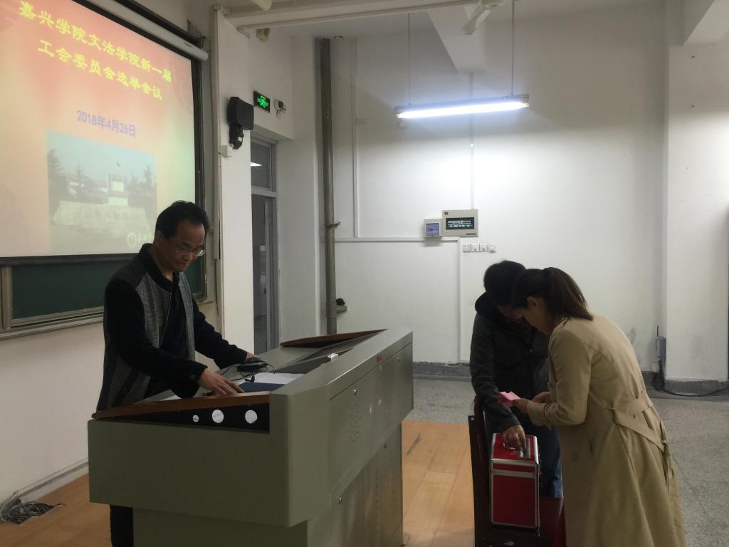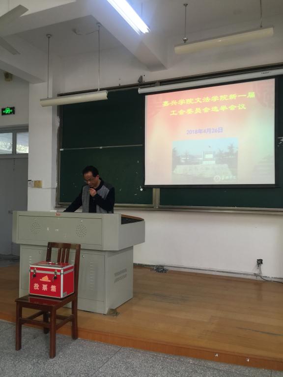 2018年4月26日下午,老虎机 在梁林校区1号楼124教室召开双代会,老虎机 全体教职工、工会会员参加大会。大会选举产生了新一届老虎机 分工会委员。