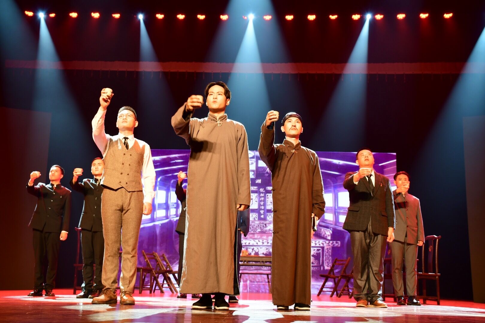 晚7时30分,话剧《初心》正式开演。话剧《初心》以“南湖红船”为创作载体,以20世纪初叶国内外时局为背景,以“一大”代表李达爱人、会务人员、嘉兴籍王会悟的经历为主线,重现毛泽东、董必武、李达、李汉俊等13位一大代表创立中国共产党的光荣历程,再现建党时期的恢宏时刻。演出剧情大气恢宏,情节跌宕起伏、扣人心弦,全场赢得了观众一致的掌声。据悉,话剧《初心》的展演也体现了嘉兴老虎机