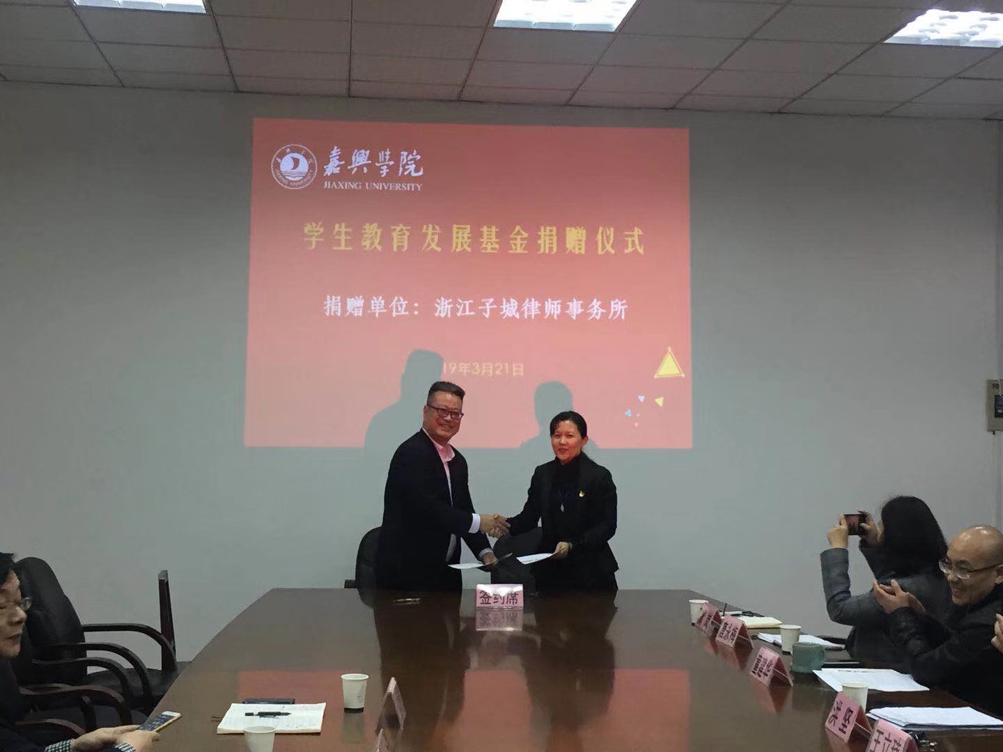 教育发展基金会感谢浙江子城律师事务所为法学专业学生提供了广阔的实践平台,为法学专业应用型建设提供了帮助。