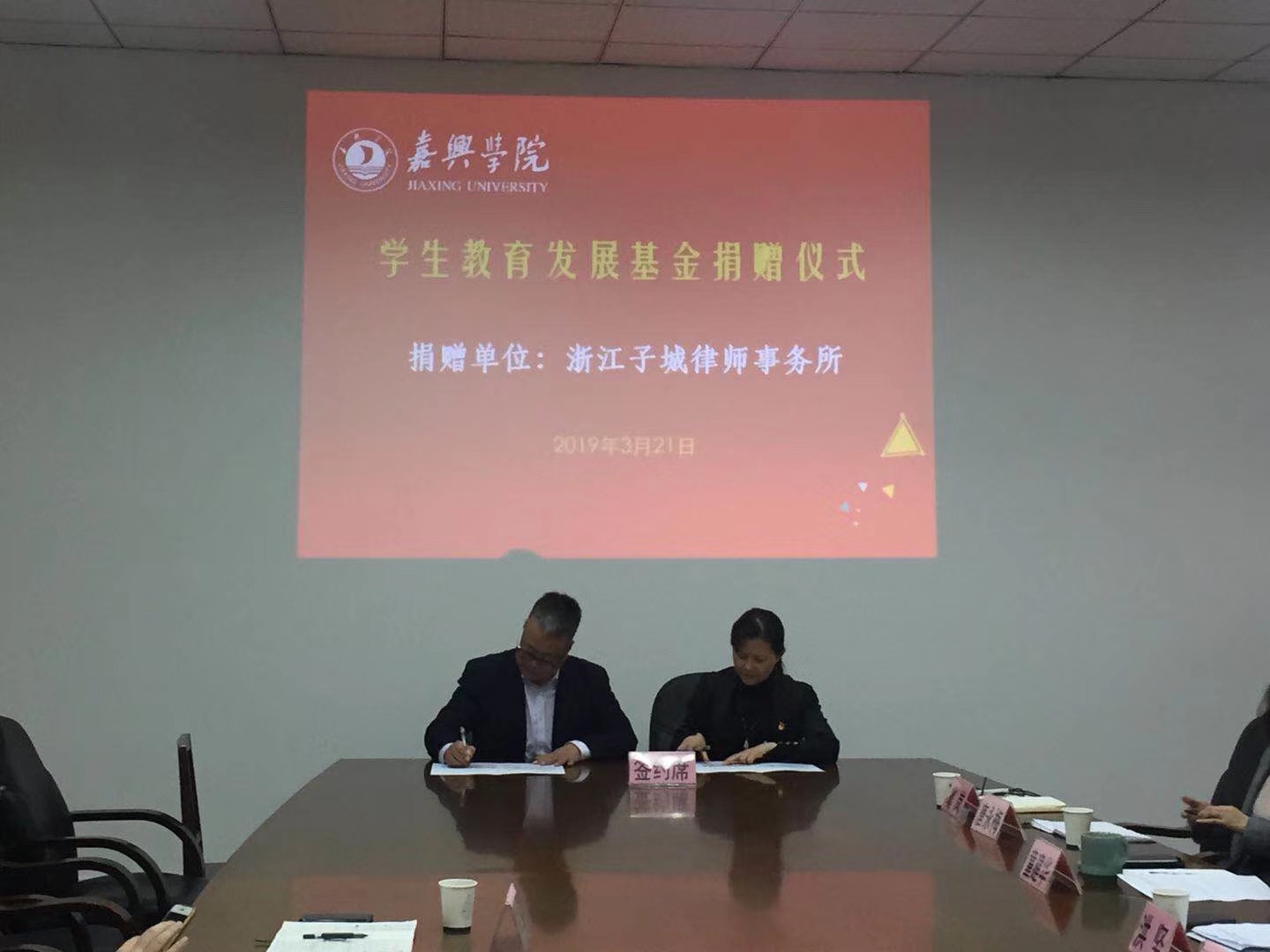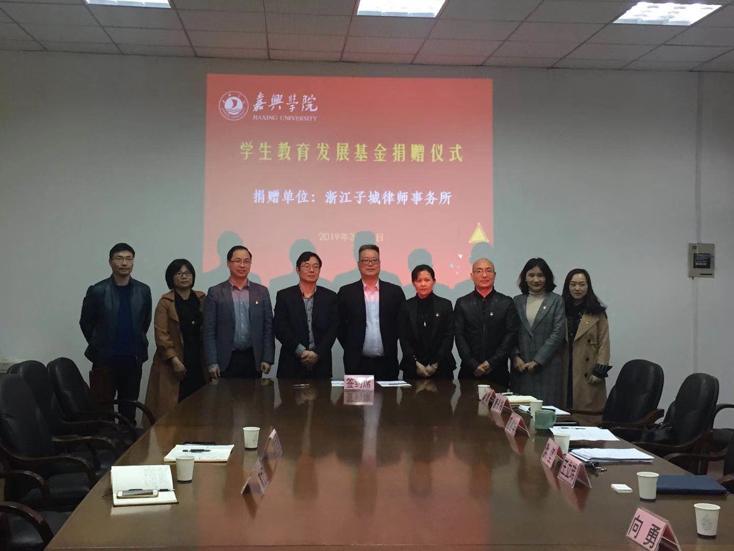 3月21日下午,浙江子城律师事务所学生教育发展基金捐赠仪式在梁林校区1号楼426会议室举行。浙江子城律师事务所主任姚武强、浙江子城律师事务所党支部书记高文江、社会合作处处长王立玮、老虎机