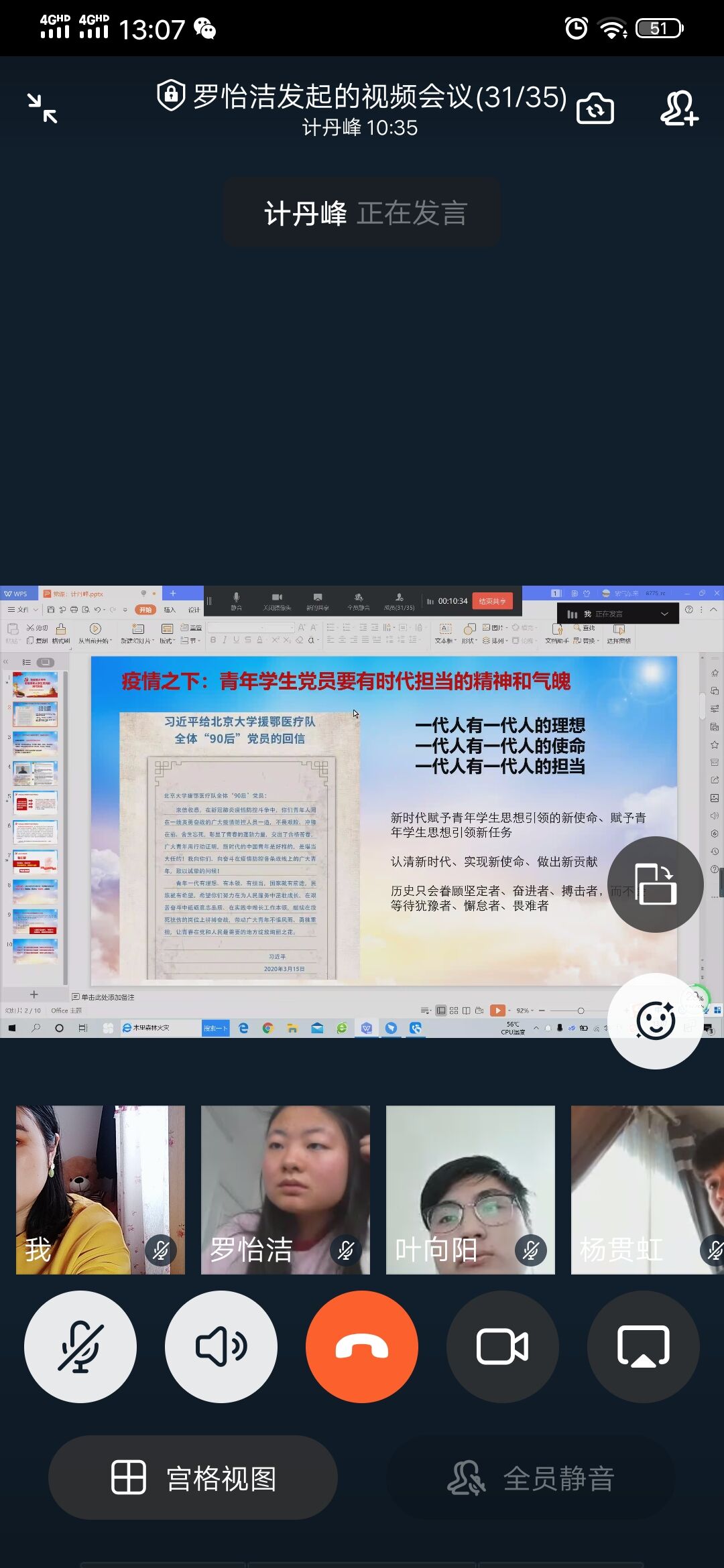 各支部开展了以“战疫我先行,党员树先锋”为主题的云端主题党日活动。各支部借助钉钉群、微信群、学习强国APP等线上平台,通过云端学习、云端党课、集体线上观看武汉战疫纪录片等方式为战疫加油,为抗疫发声,取得了凝聚共识、提高认识、发挥先锋模范作用的预期效果。