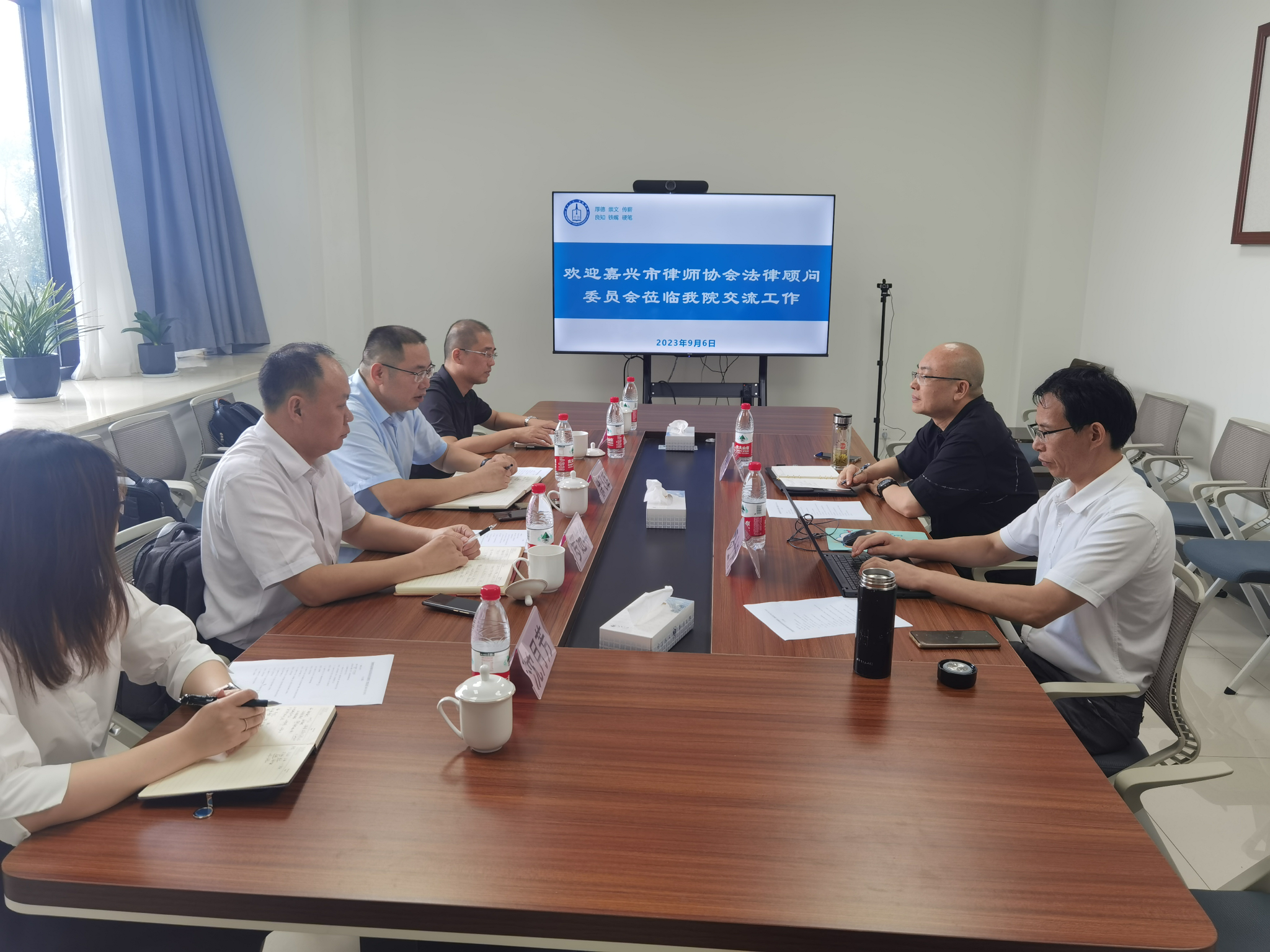 9月6日上午,嘉兴市律师协会法律顾问委员会徐飞雄等一行4人来老虎机 交流工作。老虎机 副院长(主持工作)童建华,法学系罗士俐副教授参加座谈。