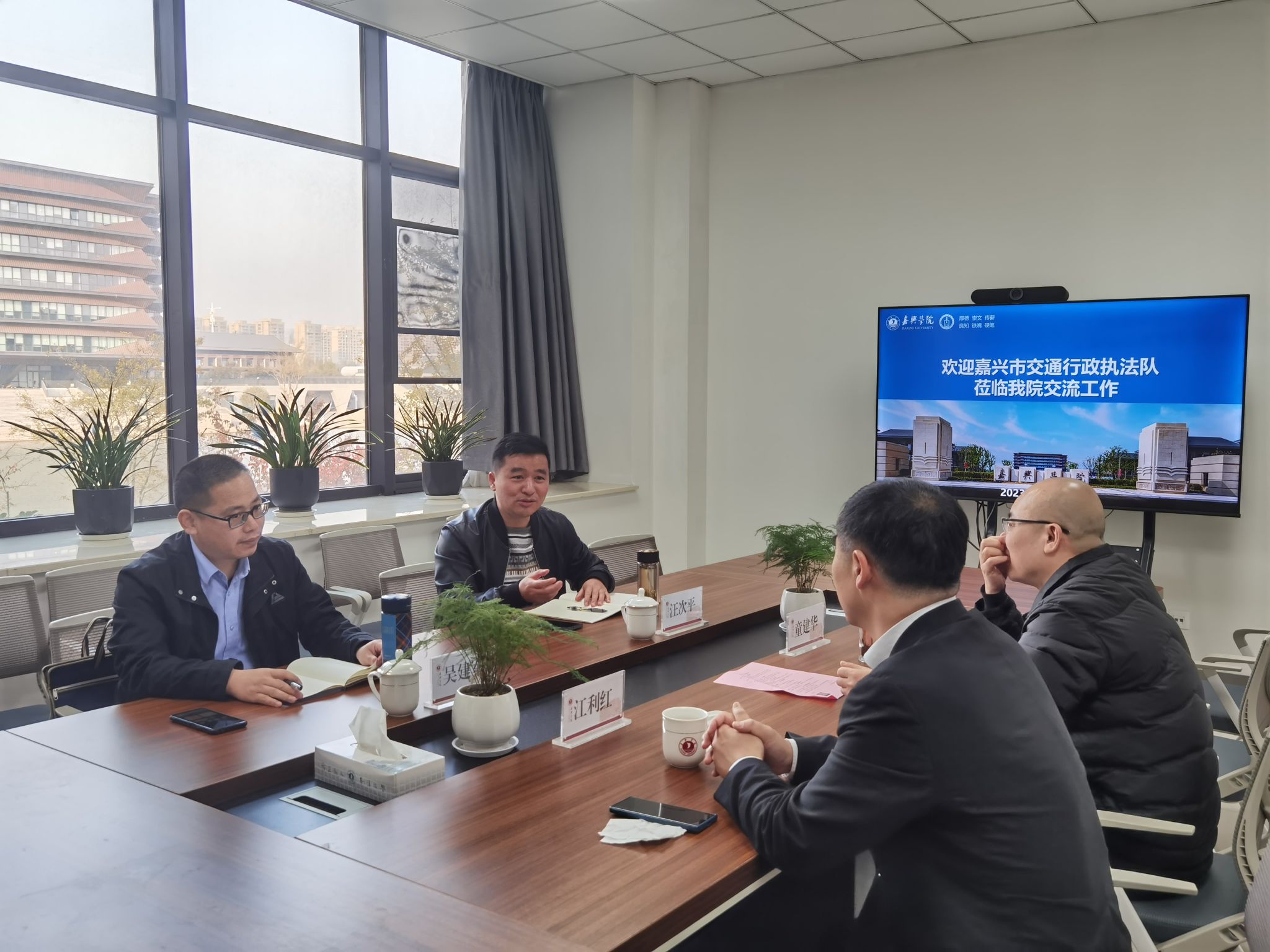 11月28日,嘉兴市交通运输局法规处处长、交通行政执法队副队长汪次平带队来老虎机 交流工作。老虎机 副院长(主持工作)童建华、华东政法大学教授江利红参加座谈。
