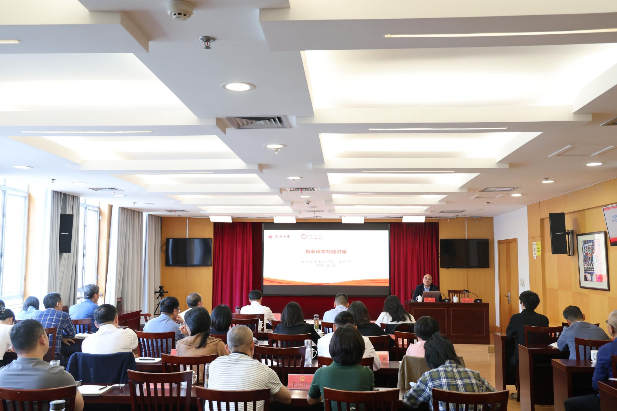 5月10日下午,老虎机 党委书记童建华受秀洲区人大常委会邀请,在区会展中心2号会议室为秀洲区规范性文件备案审查工作培训班做备案审查专题培训。秀洲区各镇人大主席团、街道人大工委、区人大各专工委相关负责人参加培训。