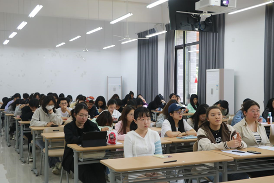 汉教专业18级校友李艳菁和14级校友蔡少伟作主讲人,由中文系教师王越主持。汉教专业21级、22级、23级全体学生参加了本次分享会。