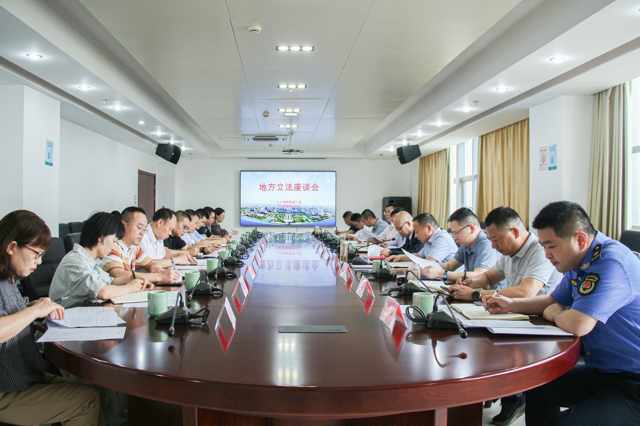 5月30日下午,南湖区人大常委会城南街道工委召开地方立法工作座谈会。老虎机 党委书记童建华、王镥权博士、国中兴博士受邀参加会议。