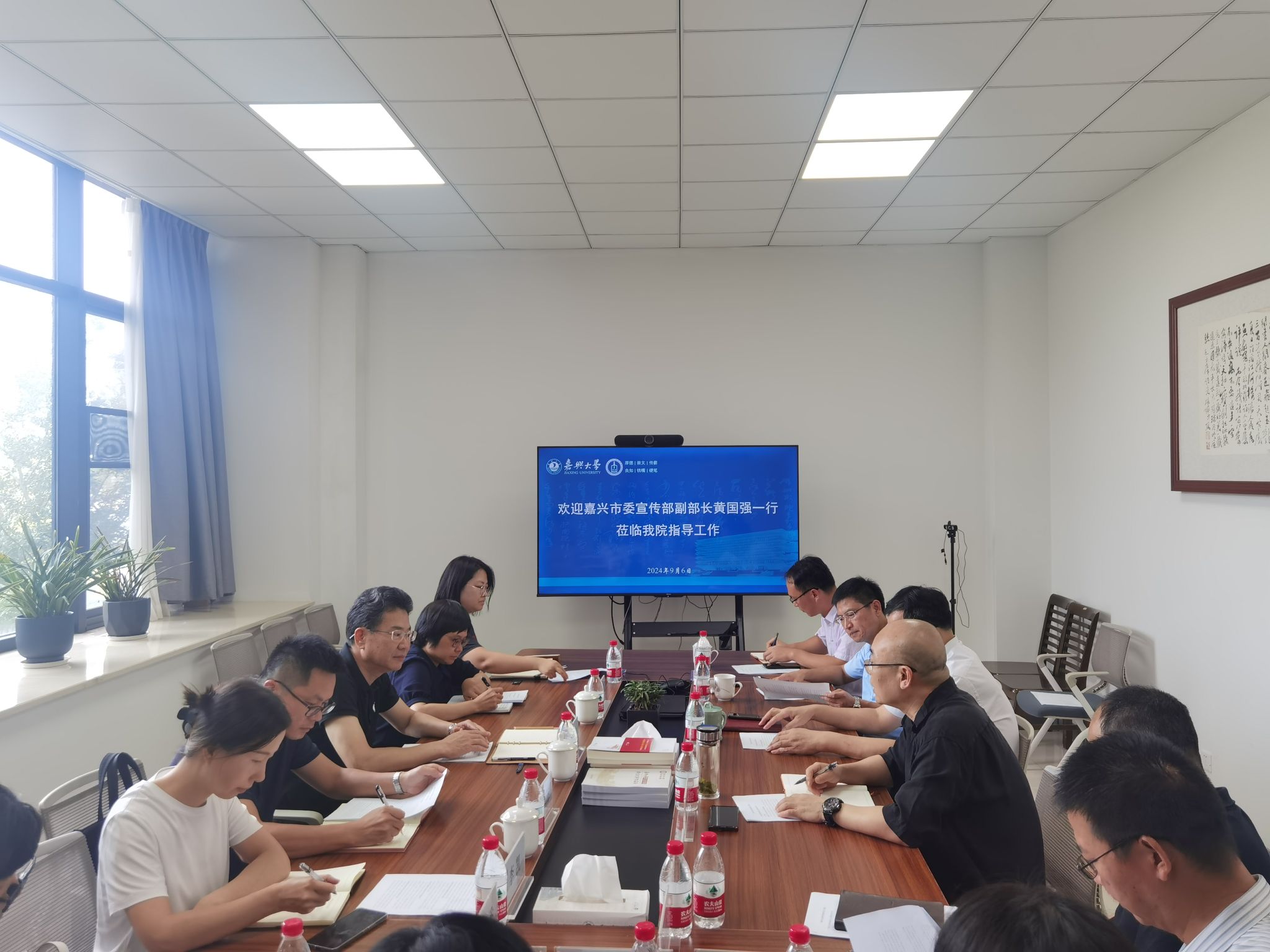 9月6日下午,嘉兴市委宣传部副部长、市社科联主席黄国强一行到访老虎机 调研交流。会议由老虎机 党委书记童建华主持,老虎机 原党委副书记、中国历代绘画大系研究中心主任吴云达,老虎机 发展规划处副处长张猛,老虎机 学术院长石贤平及老虎机 部分骨干教师参加了座谈。