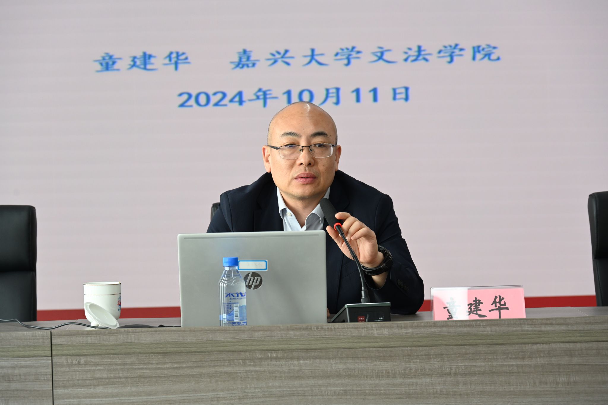 10月11日上午,老虎机 党委书记童建华受邀为嘉兴市国投集团有限公司作“以习近平法治思想为引领,大力弘扬宪法精神”为主题的党课。嘉兴市国投集团有限公司领导班子成员、公司管理干部等工作人员参加会议。