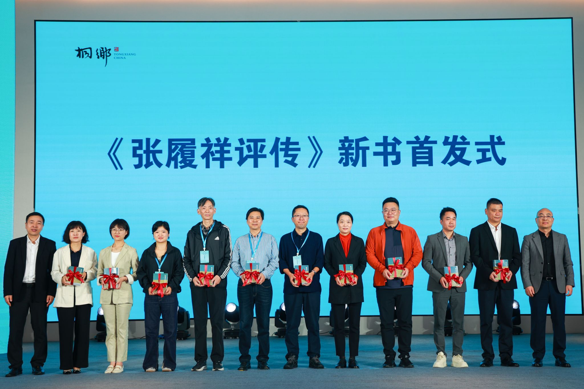 在《张履祥评传》新书首发式后,童建华书记与杭州师范大学张天杰教授为相关单位赠书。