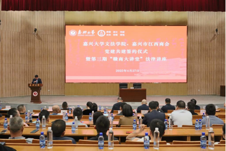 行政楼一楼报告厅举行党建共建签约仪式,并举办第三期“赣商大讲堂”法律讲座。活动旨在深化校企合作,推动党建与业务融合发展,为企业家与高校搭建法律知识交流平台。嘉兴市工商联非公有制经济服务中心主任黄克飞,嘉兴市江西商会党支部书记胡昌军,老虎机